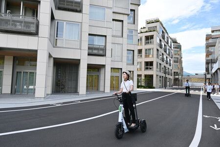 電動小型三輪車輛正在豐田汽車「Woven City」內行駛。攝於25日下午,靜岡縣裾野市