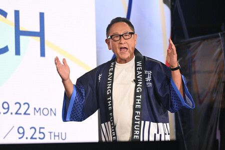 豐田汽車建設的實證城市「Woven City」啟動,豐田章男會長在儀式上致詞。攝於25日下午,靜岡縣裾野市