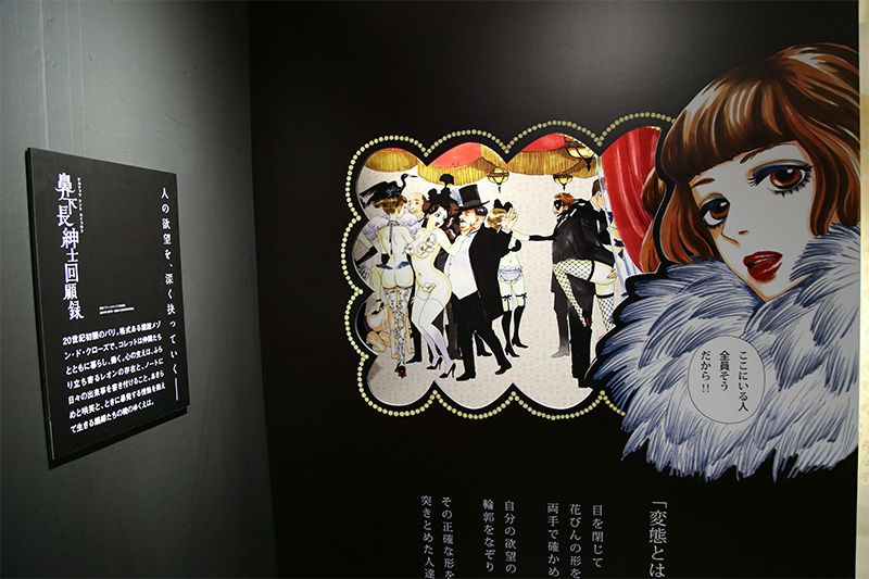 《煙花夢》第2章雖在雜誌上連載了,卻不曾在單行本中「展露真顏」,但在這裏你可以再次品讀(展會紀念畫冊中完整地收錄了第2章!)。正在連載中的《好色紳士回顧錄》展區,展示了一幅沒有文字的漫畫,畫中風塵女子的身姿和表情,能讓你充分感受到作品的獨特氛圍和故事情節。