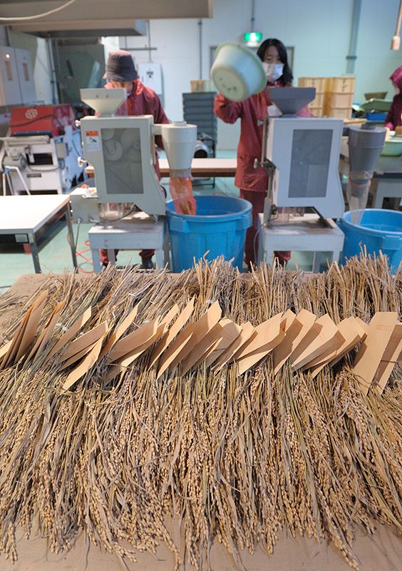 那麼,水稻的品種改良到底是怎樣的一個過程呢?「每年進行100種左右的雜交試驗,培植出15-20萬的植物個體。最初的3-4年中,反覆進行世代交替使其性質得到穩定,並掌握它們的味道、耐寒性及抗病性、產量等特徵,逐步篩選出優良種系。最後還要請農戶進行試驗栽培,直至品種註冊登記為止,大約花費了10年時間。」雖然聽上去輕而易舉,但實際上因為屬於少量生產,所以從雜交、插秧、割稻、脫粒、檢查等,整個過程大多是靠實實在在的人工作業。而且即使進入最終階段,也有可能無法實現品種註冊,所以說這確實是一項考驗耐心的工作。在數十萬的稻種個體中,評估出米粒的白度和均勻性、對病害及寒冷的抵抗性、稻稈的結實性、稻殼的不易綻裂性等所有的特性,最後選出應該保留的種子。「5分滿分中,全是4分的不行。一定要有一項特別突出的。」
