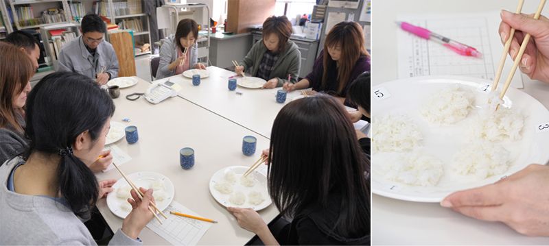 為了評價稻米的白度、光澤度和飯香,品嚐不同品種的米飯,用心咀嚼出它們的微妙差異。有時還會重新盛上一份,反覆品味