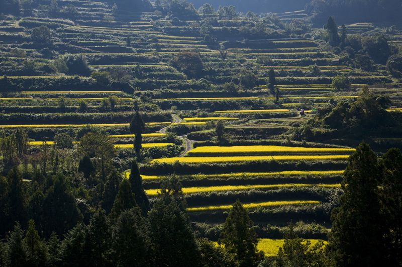 本山町的梯田高度從海拔250m至海拔850m。在與外界隔絕的空間裏,層層疊疊的梯田真可謂是「天空之鄉」。