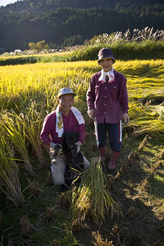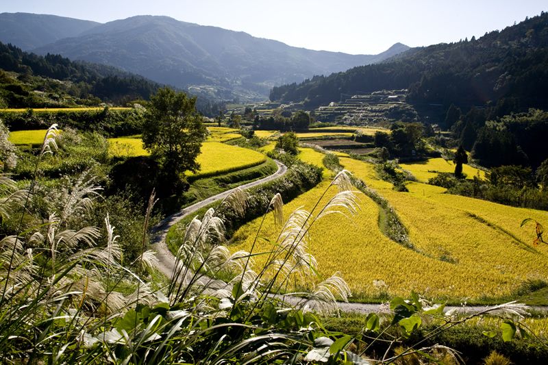 日本最好吃稻米的故鄉——高知縣本山町,位於四國中部,由北面石鎚山和南面劍山環繞;走高速公路從高知市出發大約1個小時的路程,是個接近吉野川源流的水源豐富的山區村落。從439號國道下來,沿狹窄林道行駛5分鐘左右,視域豁然開闊。從山麓直到接近山頂,呈現在眼前的是層層疊疊的梯田和等待收割的金黃色稻米。