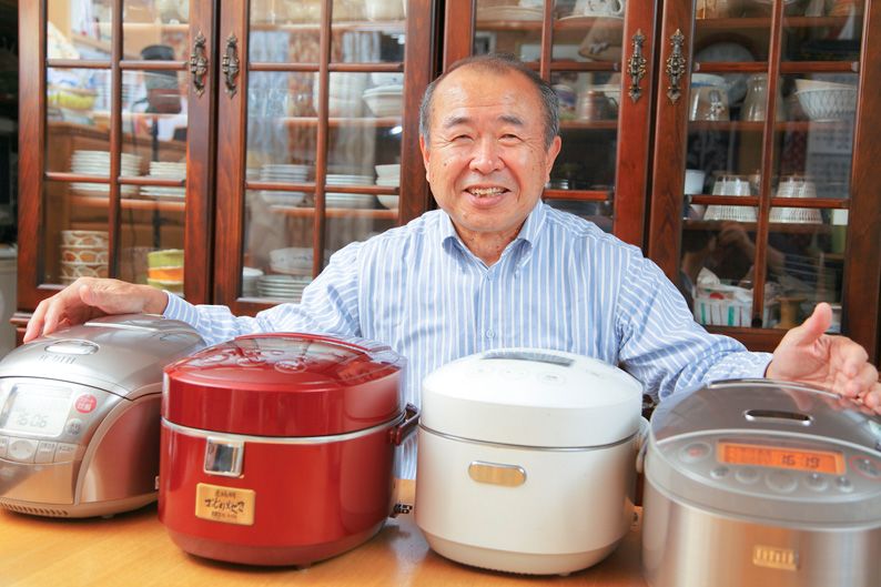 首先介紹的是1992年在業界首次開發出「壓力IH(電磁感應加熱)電子鍋」並以此奠定了高科技電鍋基礎的原鳥取三洋電機開發者下澤理如。他迄今參與開發的電鍋已多達200餘種,而且不僅作為開發者大大提高了煮飯技術,同時在稻米的品種、碾米法、吃法等方面也具有豐富的知識,被人們譽為「電鍋王」。退休至今,他仍然站在開發者的立場上不斷追求極緻美味的米飯。