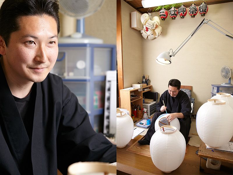 位於台東區駒形2丁目(2巷)以製作「江戶手繪燈籠」聞名的「大島屋恩田」的店主恩田修這樣強調道。恩田修是一個土生土長的淺草人。10年前,他與夫人怜美結婚,入贅燈籠店。在這之前他是一位廚師,那雙握刀的手從此握起了畫筆。