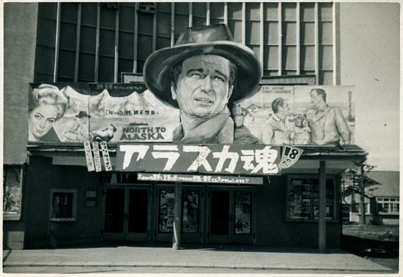 大下武夫先生早期作品。三澤基地電影院所上映之《北國尋金記(North to Alaska)》的看板。日本上映年為1961年(大下武夫提供)