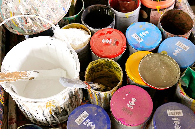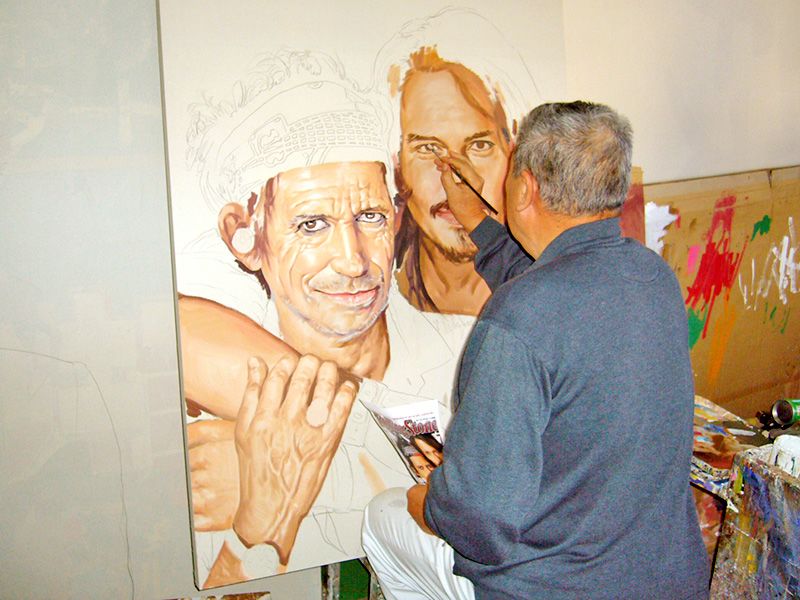 使用速乾性壓克力畫具來作畫。要畫臉部,最一開始的15分鐘是成敗關鍵。(大下武夫提供)