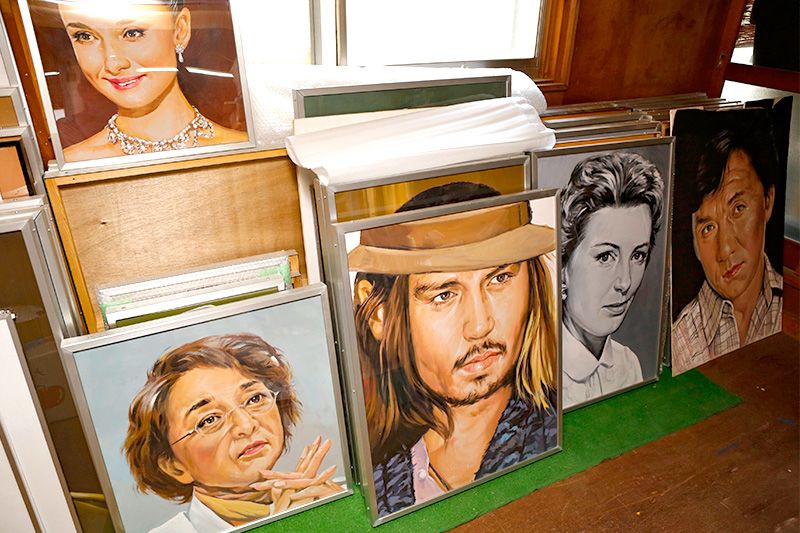 漸漸地,製作活動展示板成為其主要工作內容。大下先生大約從20年前開始,有空時便繪製懷舊名人肖像。累積超過了百幅以上的肖像畫,從高倉健、石原裕次郎、渥美清到奧黛麗赫本、亞蘭德倫、布魯斯威利、強尼戴普等,交織出新舊年代的華麗面孔。