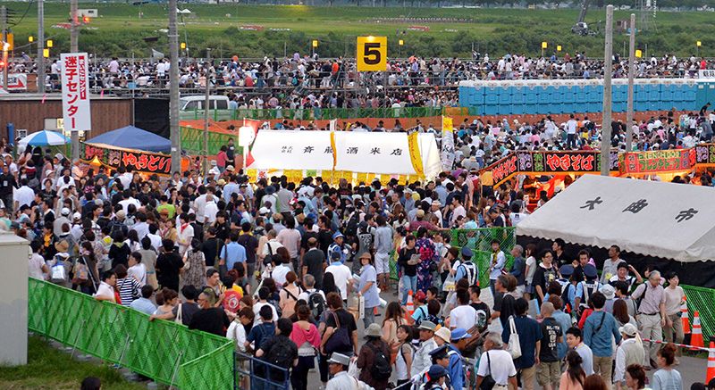 會期臨近,從東京、大阪以及1,200km之外的廣島、愛媛等全國各地,人們開始舉家陸續來到大曲。沒有票的人,為了能進入免費觀覽區,在會場旁邊搭起帳篷度過了兩個晚上。横浜市一位20來歲的男青年略顯興奮地說:「大曲的煙火帶給人的感動,與其它地方截然不同。所以我希望能有一個盡可能好一點的位置,為此排隊很值得。」大會當天早上,大約有6,000多人排起長龍,等待入場。
