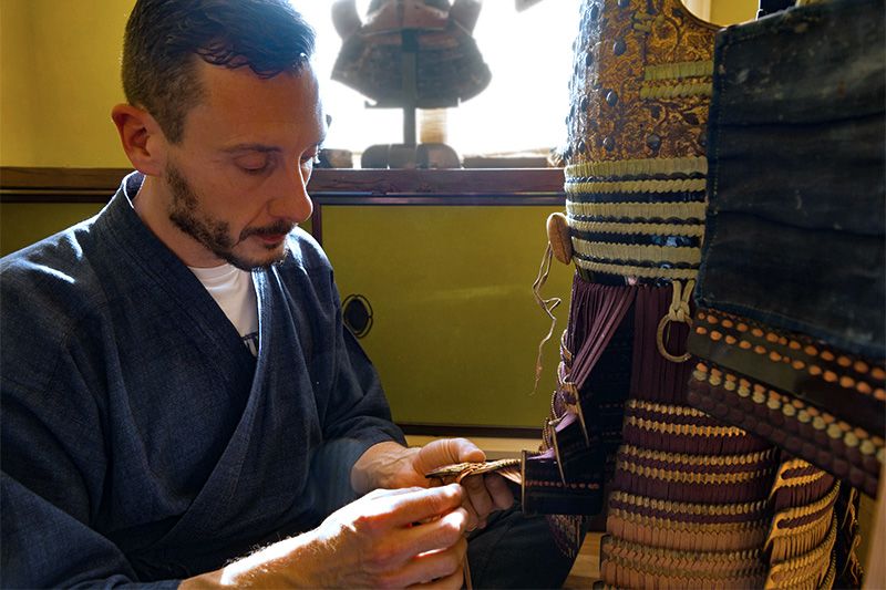 索恩斯現年45歲左右,從開始學習柔道的幼年時代起就對日本文化非常感興趣。要想修復幾個世紀前的盔甲和刀,就必須深入理解日本歷史,除技巧和材料外,還要掌握包括那個時代盔甲的形狀和圖案在內的正確知識。