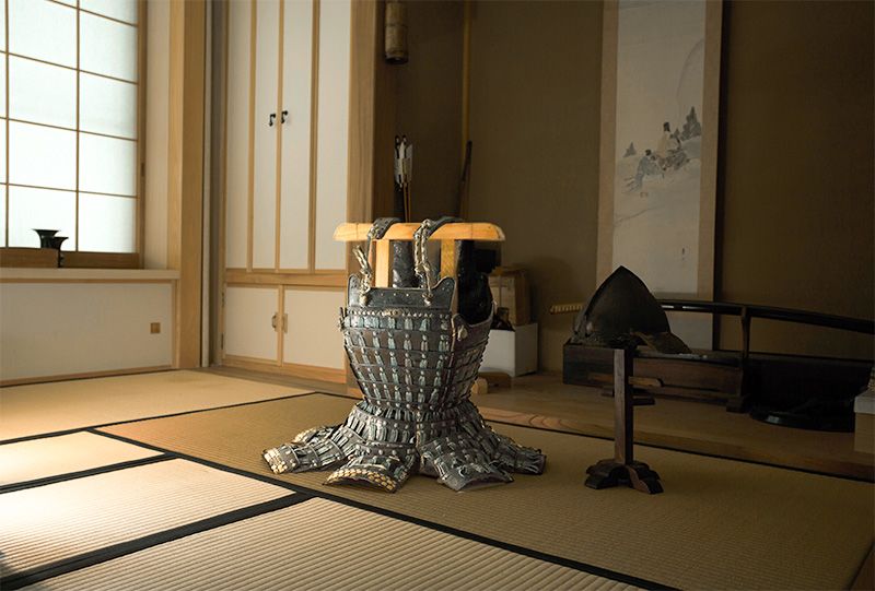 日本盔甲的外形也隨著時代變化而變遷。日本特有的「大鎧」誕生於平安時代後期(11~12世紀)。大鎧是大將級別的上級武士所穿戴的盔甲,是以騎馬射箭的騎射戰為前提,配有大袖和頭盔,很有重量感。而下級武士則使用軀幹全包圍式的「胴丸」和背部外露的「腹卷」。不過隨著時代的發展,大將級別的武士也開始用更加輕便的胴丸或腹卷來配大袖和頭盔了。