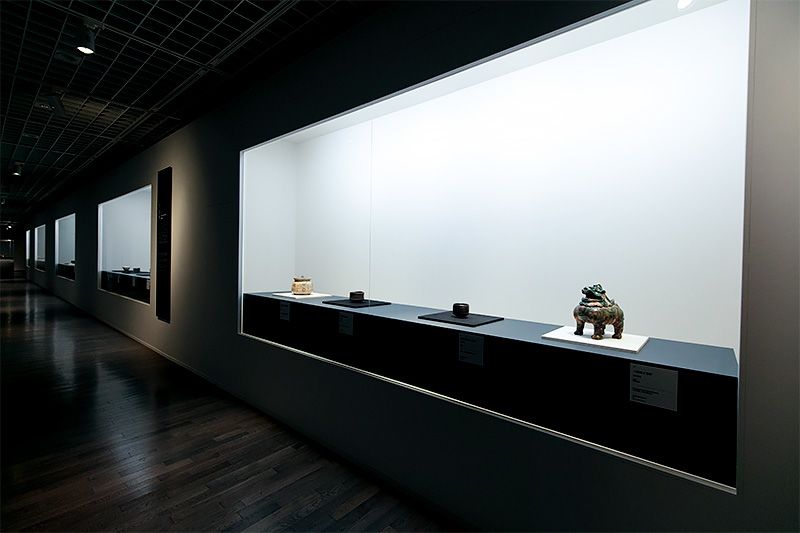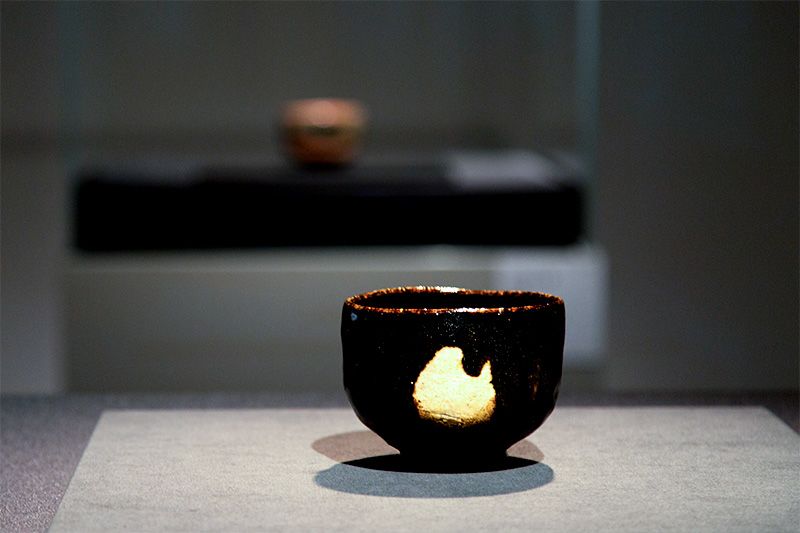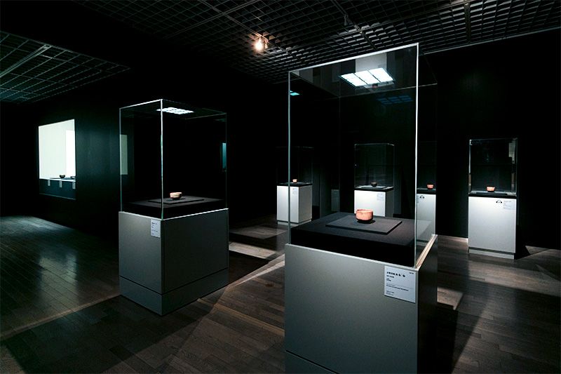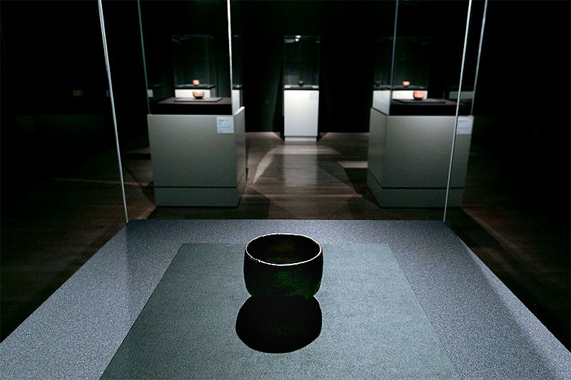觀眾在傳統與創新之間像鐘擺一樣不斷劇烈搖擺著,流覽著具有崇高精神的作品,追溯著歷代傳人的創新變遷,不知不覺間便步入最後一間展室。這裏陳列著當代傳人燒製的燒貫黑樂茶碗,靜默無言卻強勁有力,仿佛吐露了現在的心情:「願如岩石一般靜靜地呆在這裏。」