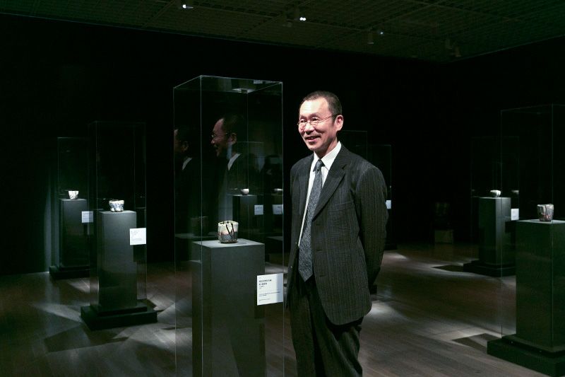 第1間展室內陳列著10多個長次郎的茶碗,這些作品都是「利休拿在手中喝過茶的」。色調單一的黑樂茶碗,碗底座及其內部均施以黑色釉藥。按照當代傳人的說法,「這些前衛作品甚至連燒製者的個性都捨棄了。」黑色竟然如此富於變化,實在是令人驚訝。