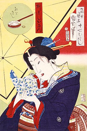 到了江戶時代(1603~1867年),普通百姓中間也流行起了白粉妝,人們開始重視更為自然細嫩的感覺。江戶時代後期出版並暢銷了100多年的綜合美容教程《都風俗化妝傳》中,就有「柔潤自然的肌膚」這種表現,其中介紹了許多美白秘訣,例如洗臉的方法、使用「密陀僧(一氧化鉛)」做面膜的方法、用草藥治療粉刺的方法等。