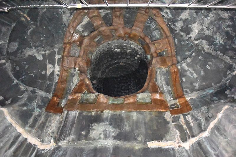 1960~1961年實施「昭和大修理」工程時,在胎體內用FRP對大佛的頭部作了加固處理(圖片提供:國立文化財機構、東京文化財研究所)