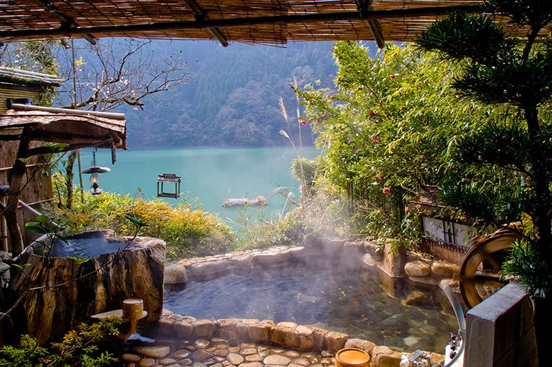 高聳於紀伊半島中部的群山之間,溫泉熱氣裊裊上升。這裏是位於深山幽谷之中的溫泉鄉。所有溫泉設施使用的都是直接來自溫泉源頭的流動泉水。泉水為重碳酸鹽泉、碳酸氫鈉泉,是馳名全國的祕境溫泉。