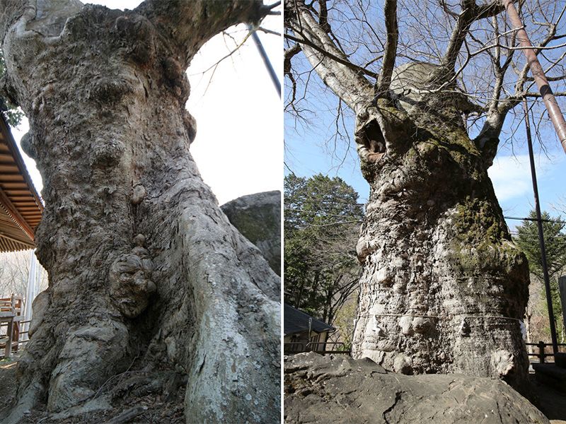 從昭和初期的照片來看,兩棵樹的樹冠龐大,樹形壯觀。1968年4月「畑木」遭遇火災,樹幹形成巨大的空洞,樹勢也隨之衰減。「田木」的主幹也折斷,出現空洞。距今約20年前,兩棵樹都僅剩幾根粗大的樹枝,樹形顯得淒涼落寞。
