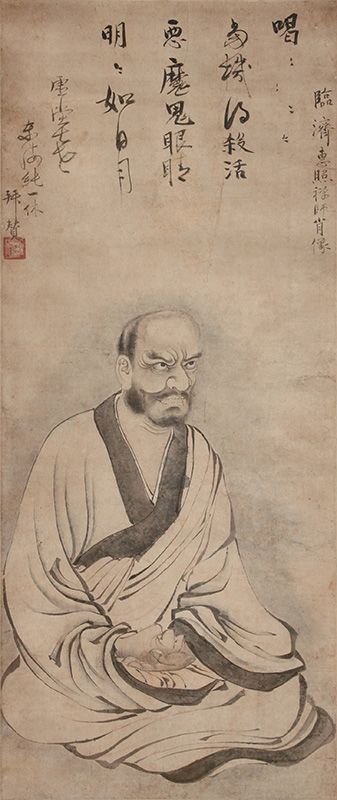 「如佛像般的表情」是溫和的代名詞,但也有佛像氣勢洶洶地瞪著眼睛,似乎即刻就會憤怒地大喝一聲,朝這邊揮過拳頭來。臨濟宗創始人臨濟義玄的肖像畫《怒目奮拳》便是如此。臨濟自己多次對修行者當頭棒喝,在禪修道場遇到這樣的禪師,恐怕很難靜心安坐吧。