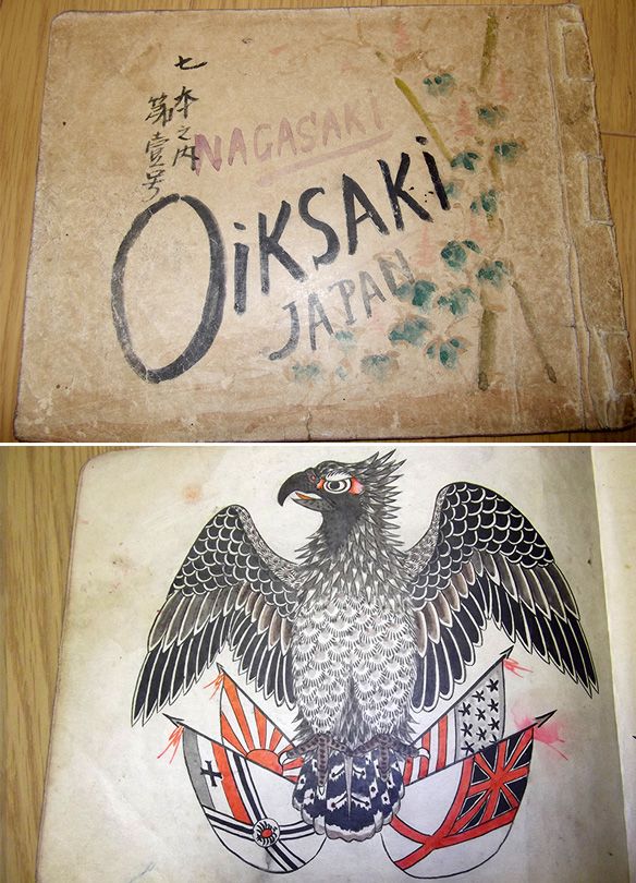 住在長崎的文身師O.Ikasaki的文身底圖圖冊。20世紀初,Horiyoshi Ⅲ收藏
