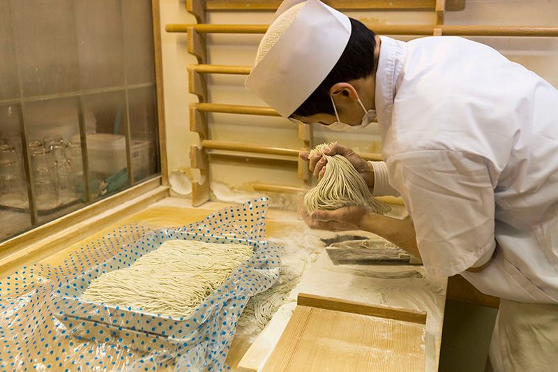 那麼,日本的餐桌禮儀,是否認為出聲吸食麵條就好呢?其實也並非如此。正規的餐桌禮儀也認為進食時發出聲響是不文雅的。那麼日本人為什麼只在吃麵時發出「斯斯」聲呢?對此,筆者就本人的專業領域「蕎麥麵」,採訪了位於東京都港區麻布十番的「總本家更科堀井」的堀井良教先生。這家老蕎麥麵店已有200多年歷史,外國食客也絡繹不絕。
