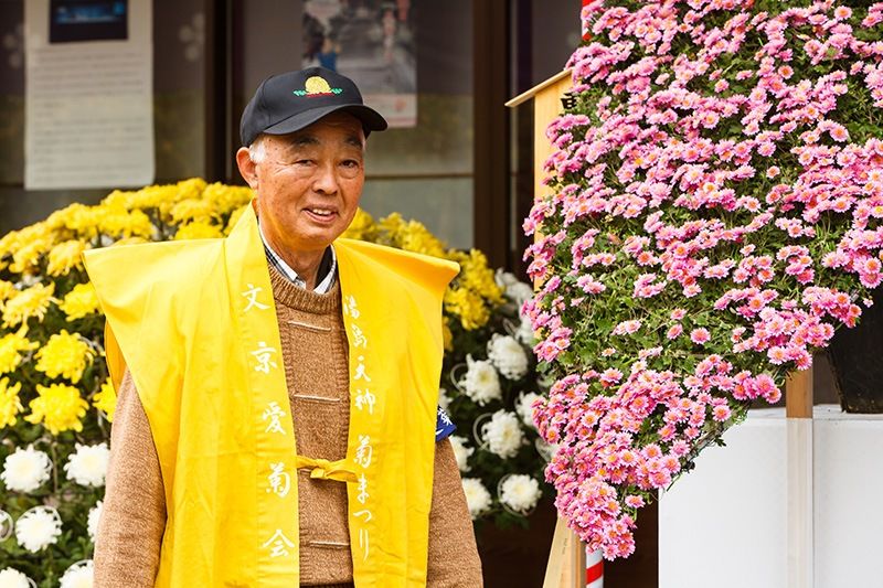「菊花是你越用心培養,它會開得越好看的花。」文京愛菊會會長杉本慶次說,「除了種子和幼苗之外,還可以用插枝(將植物的枝條斜切,插入水中或土壤中)的方法來繁殖。但是,就算把今年開得好的菊花用來插枝種植,也不能保證明年就能開得好。雖然品種可以繼承,但開得好不好看取決於你如何培育。不用心培養的話,就開不出漂亮的菊花。這花就像鏡子一樣,可以映射出你的內心。」