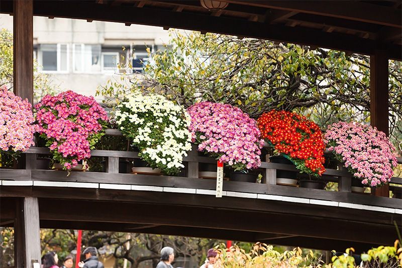 位於東京文京區的湯島天滿宮,每年11月都會舉辦「菊花節」,屆時可以欣賞到「文京愛菊會」約60名成員精心培育的菊花。出展的菊花多為大菊,包括當地中小學生培育的菊花在內,共32種、約2000株菊花在入冬前競相綻放,年年都能吸引10萬名遊客前來參觀欣賞。