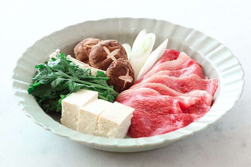 - 只要有了大蔥、香菇和牛肉,壽喜燒的感覺就出來了。其他蔬菜可以選用各種當地能買到的食材。