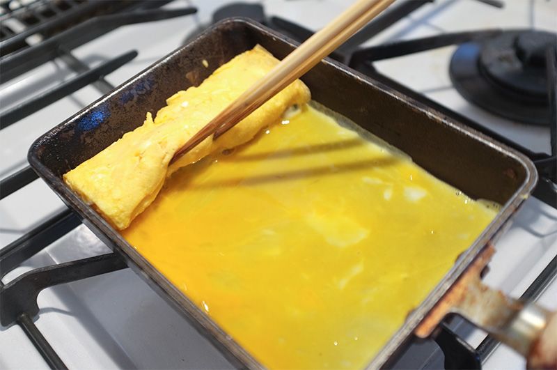 - 要想煎出「有棱有角」的整齊玉子燒,需使用玉子燒專用鍋,當然用普通的平底鍋也可以。