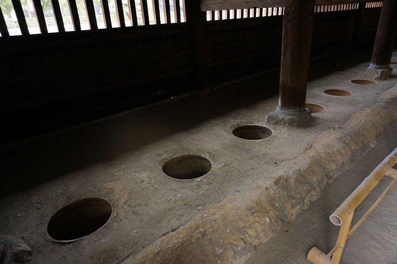 建築物內有整齊排列的原始的洞,分為較深的大便用以及較淺的小便用,從數量和寬廣度可以容納100人一次如廁,也被稱為「百雪隱」。