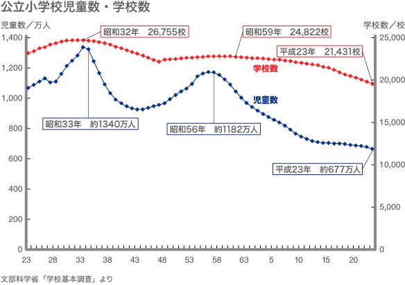 日本は、戦後のベビーブーム世代の就学期が過ぎた1960年代にこどもの急減を経験している。このときは、当時の文部省が統廃合の旗を振り現場の経費削減を求めた。しかし、性急な統廃合を求めたことで地域住民の間にあつれきを生む結果となり、第2次ベビーブームを機に、無理に統廃合を進めるべきではないと姿勢を転じた。あまり財政の論理を振りかざし過ぎると現場の反発を招き、統廃合が進まなくなるという経験をしている。