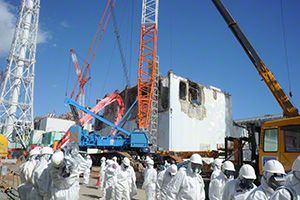 事故の収束作業が続く東京電力福島第一原発。今も状況は不安定なままだ。(福島民報社提供)