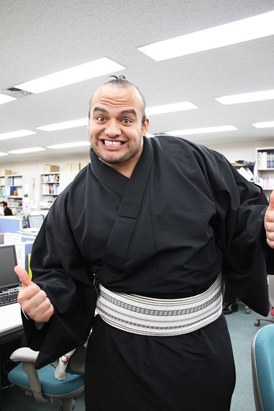 訪問時間は約20分。ニッポンドットコム内には多言語翻訳に携わる欧米各国や中国出身のスタッフが多くいるが、日本で頑張る大砂嵐関だけに、人気は絶大だった。