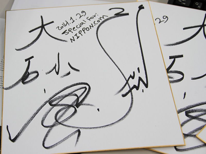 インタビューはアラビア語の通訳入りだったが、日本語はかなり上達。“達筆”とは言い難いが、大胆な筆致で色紙に「大砂嵐」と揮毫するサービス精神もたっぷりだった。
