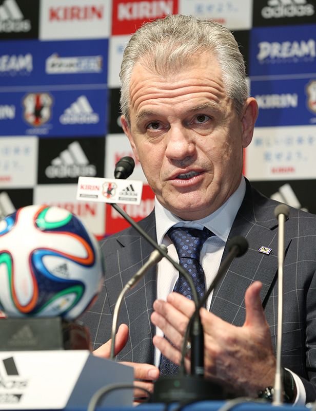 2014年10月、会見に臨むハビエル・アギーレ監督(写真提供=時事)