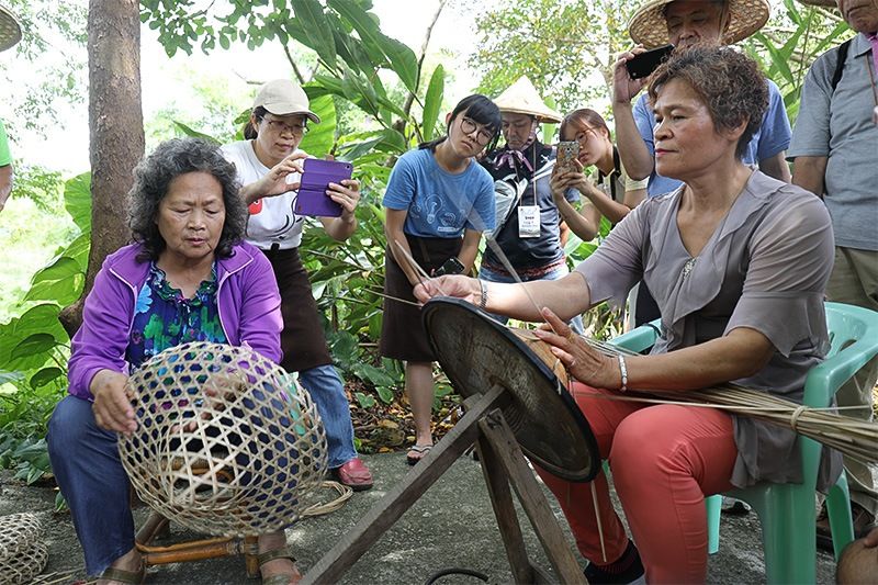 翌日は、また別の集落へ。先住民の村ではなく、客家が7割ほどを占めるという。円すい形の笠(斗笠)を作る作業を見学したり、名産の「泥火山豆腐」を実際に作ってみたり。この農村のリーダー、林益誠が豆腐の原料の大豆を栽培している畑に案内してくれた。午後は、アミ(阿美)民族の集落「吉拉米代集落」へ。迎えてくれたのは、アミ民族のシンガーソングライター、莫言。この地で文化伝承や教育に従事している。「あの滝でいつも曲を作っているんだ」と莫言が誘い、山道を歩く。滝の音に鳥の声が重なる。熱唱型の莫言の歌に力を与えているのは、こうした自然に支えられている感覚に違いない。村の中心部に戻り、「跳舞場」で開かれたコンサートは、地元アミ民族のおじさん、おばさんもノリノリ。今夜も歌って踊って長い一日が暮れた。