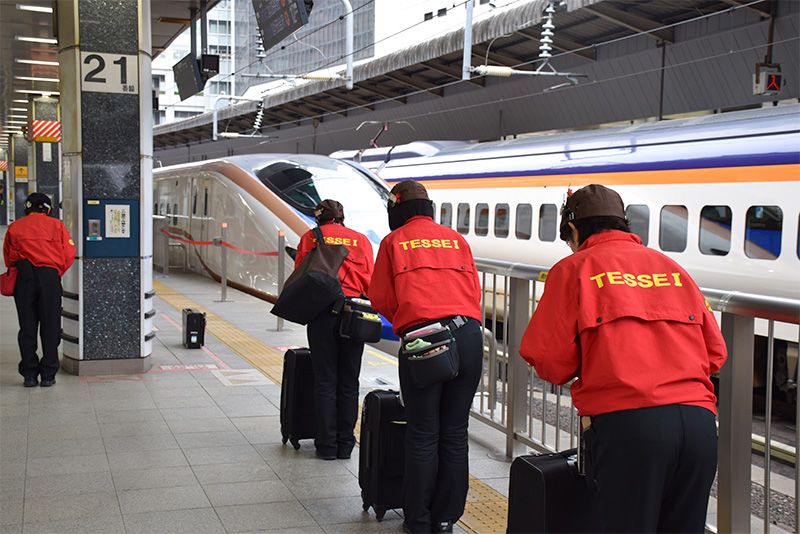 東京駅のホームで新幹線の到着を待つTESSEIのスタッフ(提供:TESSEI)