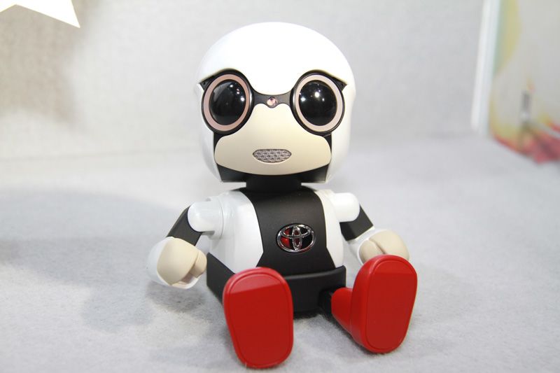 トヨタ自動車は、車のカップホルダーに入れられるサイズのコミュニケーションロボット「キロボミニ」を展示した。ユーザーの好みや思い出を記憶し、その後の会話に反映する。本体の希望小売価格は税抜き3万9800円で、2017年に全国で発売予定