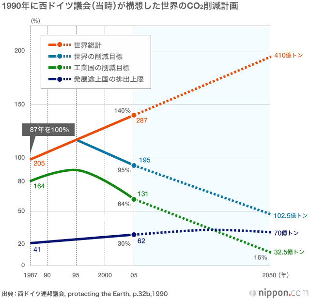 だが、核戦争の脅威と温暖化の脅威が似ているというだけで、これほど壮大な条約がわずか2年半で成立するはずがない。冷戦直後に、地球温暖化を新しい人類共通の課題として高く掲げ、その対策に邁進(まいしん)しようとする国が現れたからである。再統一を目指すドイツである。