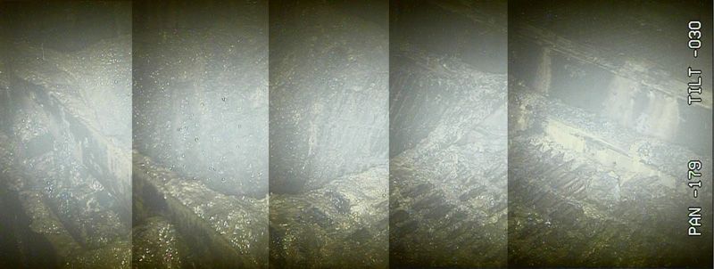 26日の調査ではレールの途中までを撮影し、大きな障害物がないことを確認。30日の調査ではさらに奥へとカメラを押し入れ、原子炉直下の作業用足場の一部を撮影することに成功した。福島第1原発事故後、原子炉直下にカメラが入るのは全号機を通じて初めてのことである。カメラのライトが照らし出した光景は、鉄製の足場がまるで「あめ」のように曲がって垂れ下がり、黒とも茶色ともいえない堆積物がそこら中にこびりついているという衝撃的なものだった。