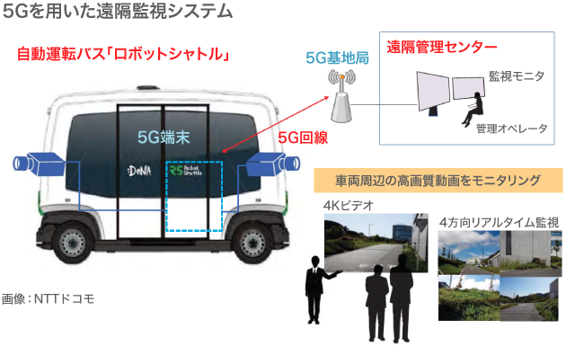 5Gを用いた遠隔監視による自動運転バス「ロボットシャトル」(写真・画像提供:NTTドコモ)
