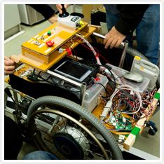 「ボタンを押すと、地面のラインに沿って自動でモノを運びます。外部のセンサーを付属させ実験している段階ですが、応用すれば障害者を運ぶ電動車椅子になります。この技術で搬送ロボットも作っています」