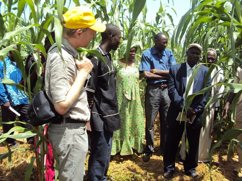 トウモロコシ畑を訪問。地元農家は従来農法と比較した新技術の効果を自らの目で確認できる。