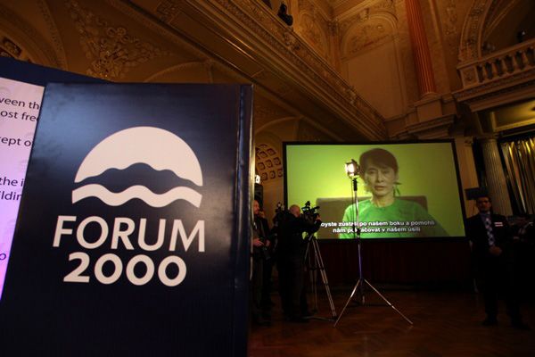 フォーラム2000は、文明が直面する主要課題を明らかにすることや、宗教・文化・民族間の緊張による紛争の激化防止、非民主主義諸国における民主主義の推進、民主化されて間もない諸国における人権の尊重、宗教・文化・民族間の寛容の促進を目的としている。世界的な対話を広げるためのプラットフォームとして、各界の指導者や知識人が参加。これまでの参加者の中には、クリントン元米大統領、ヴァイツゼッカー元独大統領、チベット仏教最高指導者のダライ・ラマ、南アフリカのアパルトヘイト撤廃に尽力したデズモンド・ツツ元大主教など、多くの著名な人物の名が並ぶ。