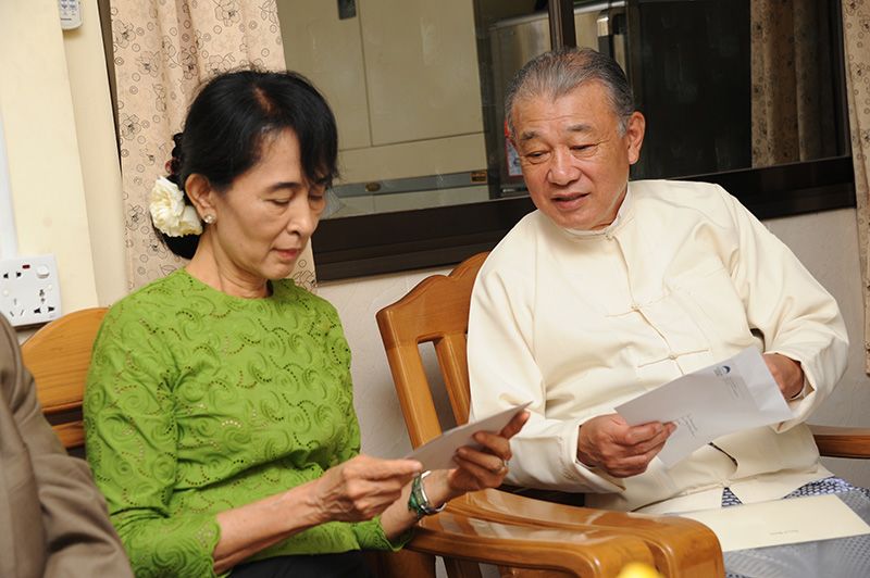 スーチー氏にハベル氏からの手紙を渡す笹川陽平・日本財団会長(写真=日本財団)