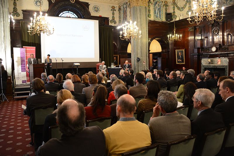 ロンドンの「グローバル・アピール」宣言式典でスピーチする笹川陽平氏