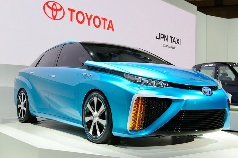 トヨタ自動車は〝究極のエコカー″とも言われる燃料電池車の試作車「FCVコンセプト」を世界初出展した。実用性の高いセダンタイプで、小型・軽量化した新型燃料電池や高圧水素タンク2本を床下に配置。フロントから空気を吸いこみ、リアから水のみを排出する。3分間の水素充填で航続距離500㎞が可能という。2015年には市販されるが、水素ステーションの整備が今後どこまで進むかなど課題はある。トヨタと同様、ホンダも同年からのFCVの市販化を目指している。