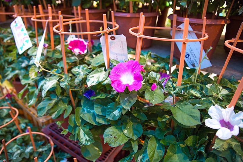 朝顔と江戸との縁は江戸末期までさかのぼる。御徒町一帯で盛んに栽培されていた朝顔の市が、入谷鬼子母神の境内で開かれるようになり、それが今日まで続いている。