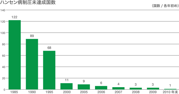 (※1) ^ 1991年の第44回世界保健総会で、ハンセン病の制圧とは人口1万人当たりの患者数が1人未満となることと定義された。