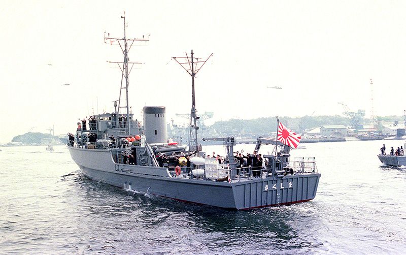 掃海艇ペルシャ湾派遣 出航する掃海艇「さくしま」(神奈川・海上自衛隊横須賀基地)©時事