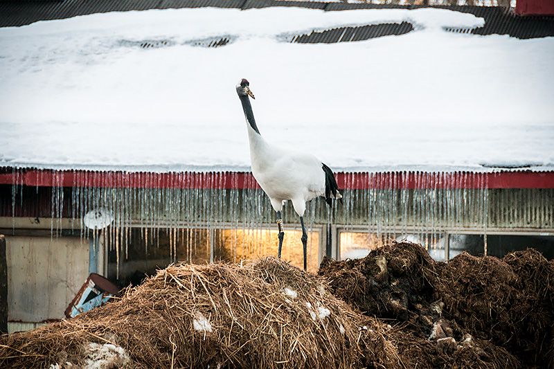畜産農家のゴミためや堆肥の山で餌をついばむタンチョウも出てきた。まさに「掃きだめに鶴」とはこのことだ。
